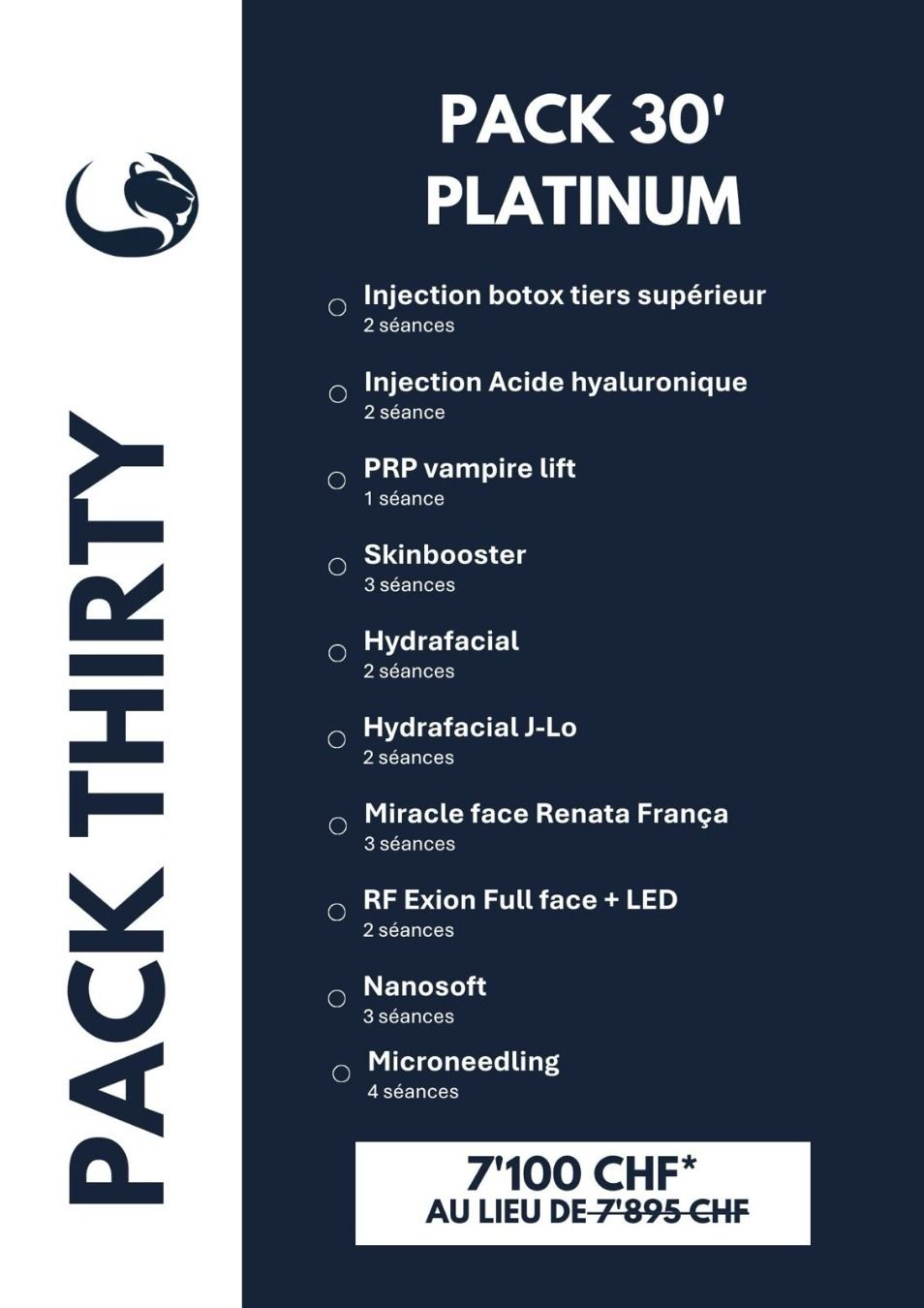 Forfait Platinum : L’excellence du soin visage avec des techniques de pointe pour un effet liftant, repulpant et rajeunissant intense. Ce programme combine plusieurs approches esthétiques pour offrir un véritable traitement anti-âge global et personnalisé.